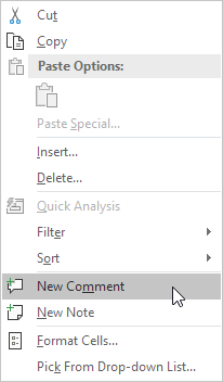 Right-click the cell and choose New Comment.