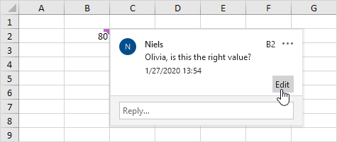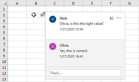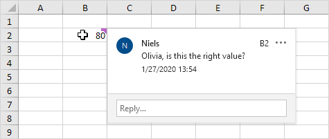 Other people can reply to your comment, which makes it easy to have discussions inside the Excel file.