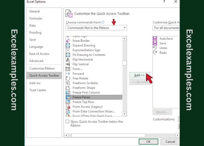 - Under Choose commands from, select Commands Not in the Ribbon.