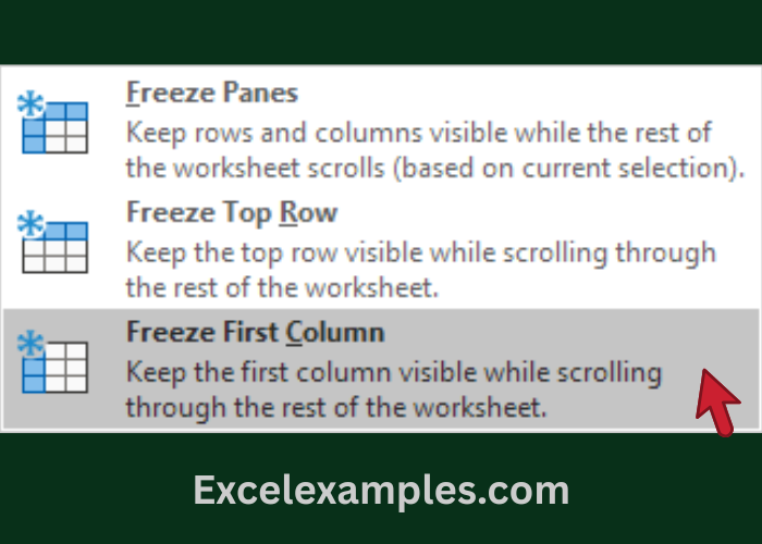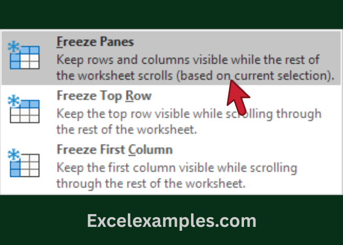 👉 Excel freezes everything ABOVE and to the LEFT of the selected cell
