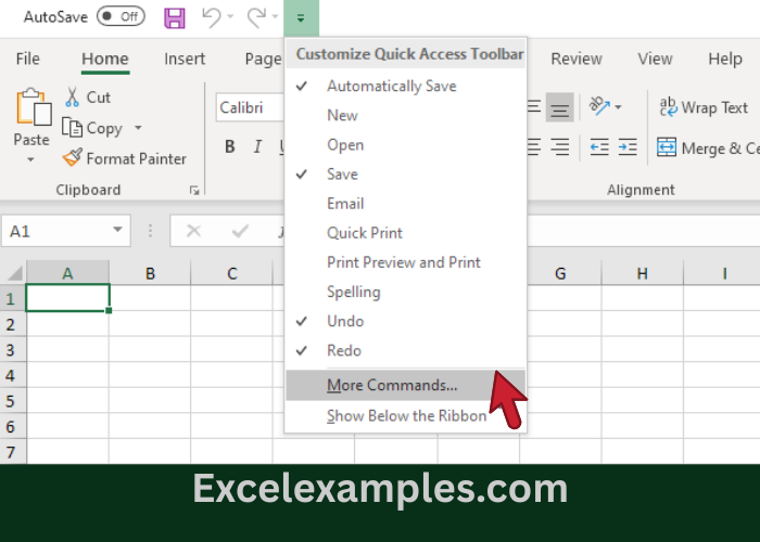 - Click the small down arrow on the top-left (Quick Access Toolbar).