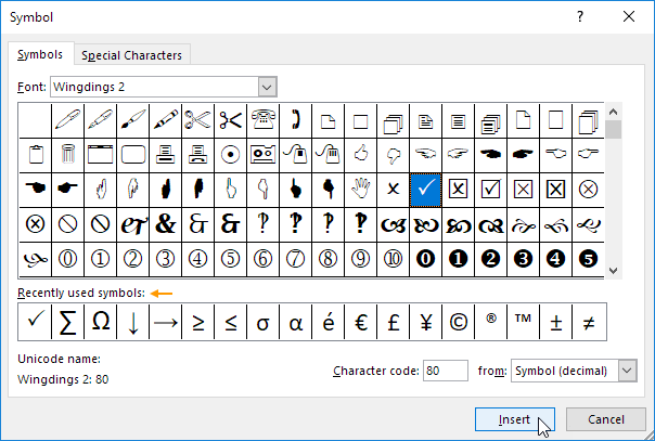 5. Insert Check Mark from Symbols