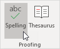 Go to: Review tab → Proofing group → Spelling