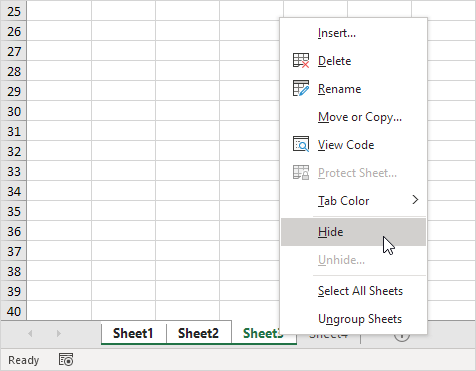 Note: An Excel workbook must always have at least one visible sheet.