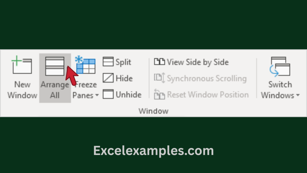 Go to: View tab → Window group → Arrange All