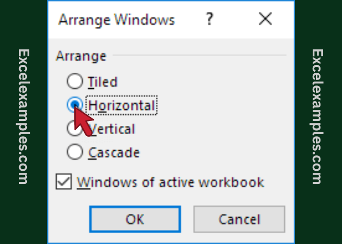 Excel will align the windows and enable Synchronous Scrolling by default.